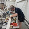 Lift tile, mixing glue, tiling, screeding and water proofing