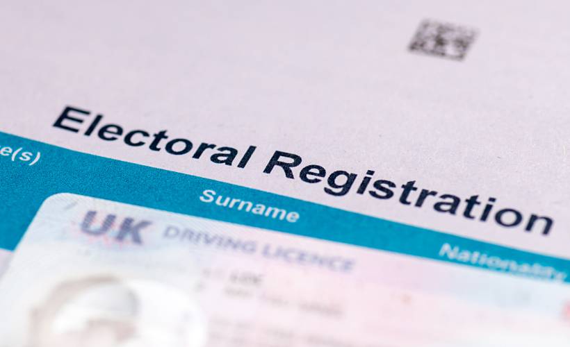 Close-up of an electoral registration document with a UK driving licence on top (Source: iStock)